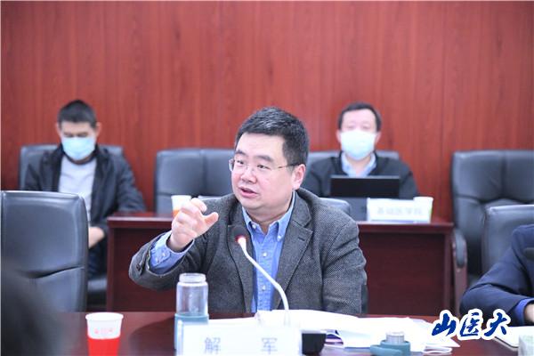 10月28日下午,学校在迎泽校区教学办公楼第一会议室召开2023年国家自然科学基金申报启动会。校长解军出席会议。科学技术部、医院管理部及校本部院(系)负责人、市内各附属医院负责人线下参加会议,省内其它地市附属医院负责人线上同步参加会议。会议由党委常委、副校长焦向英主持。