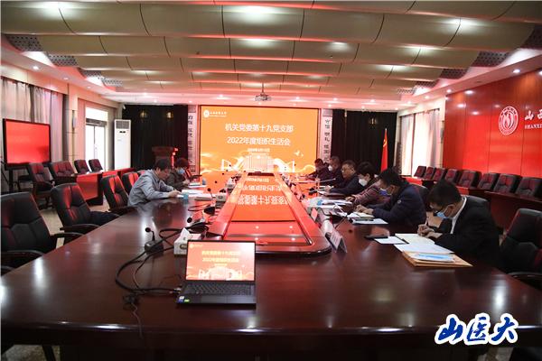 3月13日上午,机关党委第十九党支部在迎泽校区教学办公楼第一会议室召开2022年度组织生活会。校党委书记王军同志以普通党员身份参会,学校第一督导组组长陈显久、机关党委书记郭华莅临指导,会议由党支部书记蔡蕊主持。