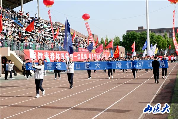 运动会开幕式上,来自各地的50余名校友组成校友方阵入场,他们中年龄最大的75岁,最小的26岁,方阵中还有学校历届运动会铅球、跳高的校纪录保持者,3000米、5000米长跑冠军。一面面鲜艳的校友会旗,一张张饱含激动和笑容的面庞,无不表达着学校与校友们的深情厚谊,一句“亲爱的校友们,欢迎回家!”响彻山医校园,让所有在场的师生为之泪目。