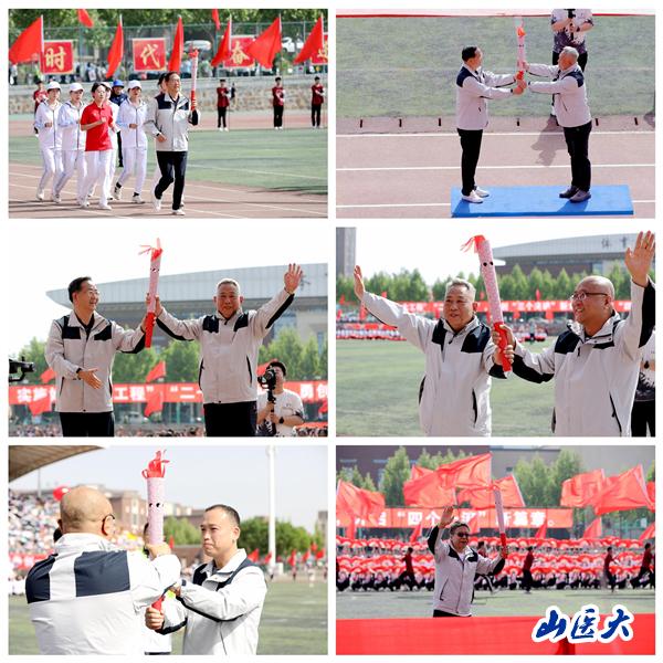 开幕式演出开始前,由太原校友会会长李俊峰、江苏校友会会长杨志杰、陕西校友会会长赵匡、浙江校友会秘书长张红斌、上海校友会常务副会长孙保健等五位校友会负责人进行了“奋进之光”接力传递,拉开了《走进新时代 奋进新征程》大型展演的帷幕,整个运动场的氛围达到了最高潮。