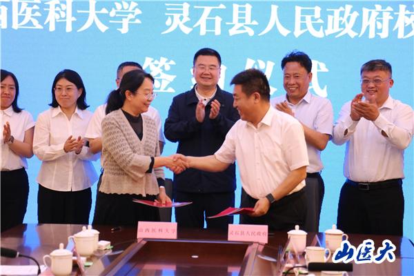 5月21日,校长解军,校党委副书记彭月兰赴灵石县参加高层次人才引进座谈会(医疗集团专场),并签订校县合作框架协议。会上刘斌奇副县长介绍了灵石县医疗卫生发展和医疗人才引进待遇情况,韩军书记做了重要讲话,我校彭月兰介绍了学校基本情况。