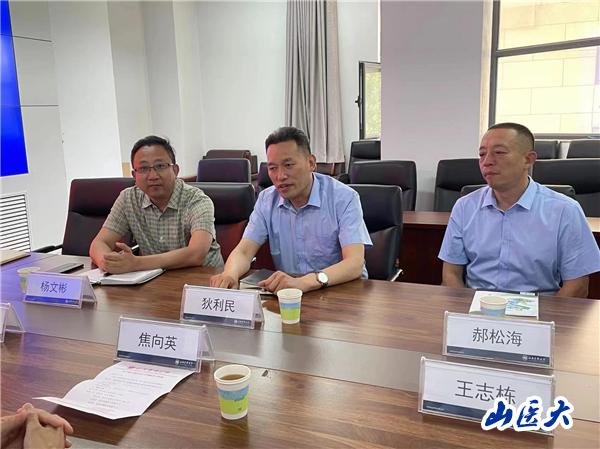 2023年5月23日,太原师范学院校党委常委、副院长狄利民带领太原师范学院保卫部部长郝松海、信息化建设与管理中心副主任杨文彬等相关部门负责同志一行五人,来我校进行了为期半天的调研交流。此次调研内容聚焦于智慧校园、校级数据共享平台、师生服务大厅、智慧安防建设等领域,旨在增进友谊,互相借鉴,共谋发展。校党委常委、副校长焦向英出席并致欢迎辞,网络中心以及武装保卫部有关人员参加了本次交流活动。