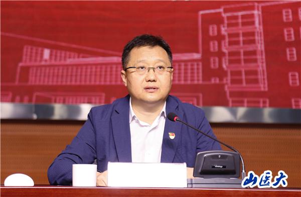 王军指出,党的十八大以来习近平总书记四次莅晋考察调研,殷殷嘱托饱含深深期许,谆谆教诲指明发展方向,充分体现了习近平总书记对山西工作的高度重视、对山西发展的深情牵挂、对山西人民的关怀厚爱。习近平总书记四次考察调研山西重要讲话重要指示精神,在总体要求上一脉相承,在具体问题上愈加深化,构成了内涵丰富、系统完备、逻辑严密的有机整体,是习近平新时代中国特色社会主义思想的重要组成部分,是做好山西各项工作的根本遵循和科学指引,是真理之光、力量之源、奋进之路。全校师生医护员工要把学习贯彻习近平总书记考察调研山西重要讲话重要指示精神作为重要政治任务,永远铭记习近平总书记的深情厚爱,永远听党话跟党走。王军指出,学校正处于继往开来、增压提速的新阶段,机遇与挑战并存。学校深入学习贯彻党的二十大精神,紧紧抓住国家“双一流”建设、我省高等教育高质量发展“百亿工程”实施的良好机遇,助力健康中国和健康山西建设,事业发展取得了长足的进步,但同时也存在一些不足和困难,是制约学校高质量发展的瓶颈,需要久久为功,持续下大力气加以解决。我们要始终牢记领袖嘱托,始终保持时时放心不下的责任感和奋发进取的精神状态,攻坚克难、勇立新功,奋力开创学校事业发展新局面。要勇开解放思想之先,争做敢为、敢闯、敢干、敢创的好干部;要善于学习思考、善于实践历练、善于总结提升,学真本领练真功夫;要大兴调查研究之风,切实发现问题、推进工作,强化治本功效;要坚守久久为功之志,树立和践行正确政绩观,坚持功成不必在我、功成必定有我,一张蓝图绘到底;要凝聚真抓实干之力,不断巩固拓展成效,确保各项工作落地落实。