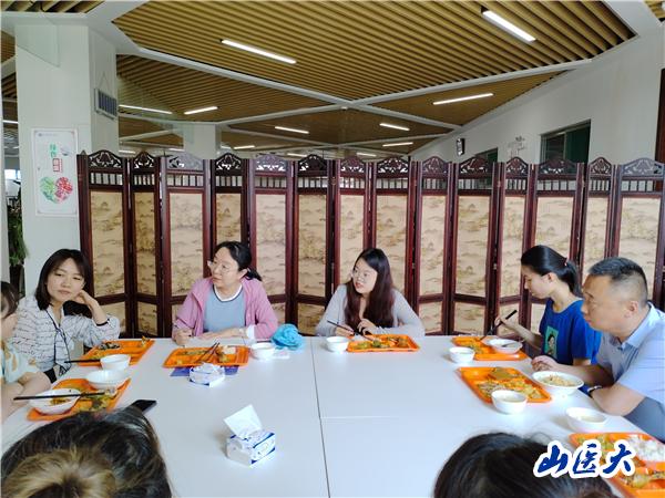 6月12日中午,在中都校区第二食堂,校党委副书记彭月兰同我校来自2021级和2022级不同专业的9名学生代表共进午餐,利用午餐时间与学生交流,倾听学生在校学习、生活的感受。学生工作部、校团委等部门负责同志共同参加了该项活动。