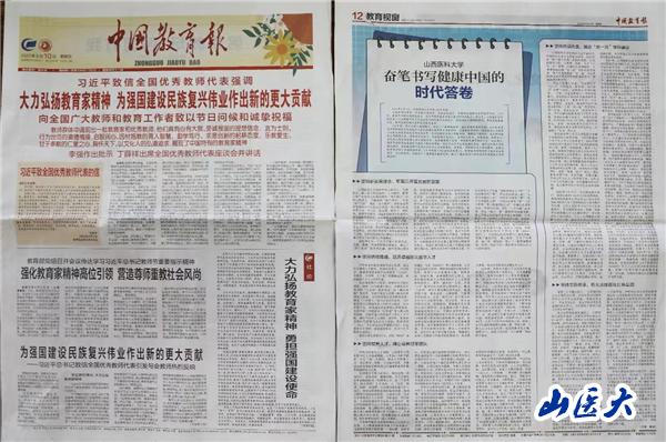 《中国教育报》专版刊发我校党委书记王军、校长解军的署名文章:奋笔书写健康中国的时代答卷