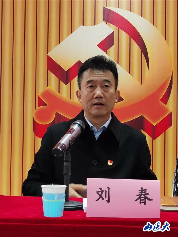 刘春在讲话中肯定了近年来麻醉学院所取得的成绩,对学院党总支提出了要求。他指出,当前,学校正处于继往开来、增压提速的新阶段,开启了建设全国一流研究应用型医科大学的新征程。麻醉学院党总支要坚定不移坚持党的领导,扛牢全面从严治党主体责任,持续深入学习贯彻习近平新时代中国特色社会主义思想,巩固运用好学习贯彻习近平新时代中国特色社会主义思想主题教育成果,全面提升政治能力和政治本领。要坚定不移坚持根本任务,保持强烈的事业心和责任感,拿出求真务实、主动担当、敢于创新的干事创业精气神,凝心聚力,担当务实,推动学院各项工作再上新台阶。坚定不移锤炼党性修养,时刻把党的政治纪律和政治规矩挺在前面,着力营造风清气正的政治生态。