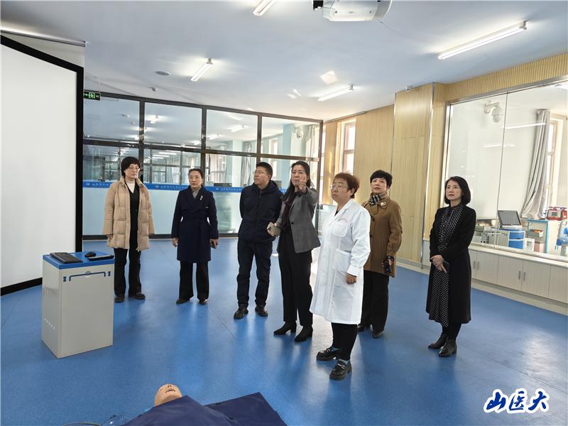 张岩波实地走访了护理实训中心,详细询问了实训中心各层功能布局和建设使用情况,听取了学院就新一轮学科目录发布以后的设想和布局。