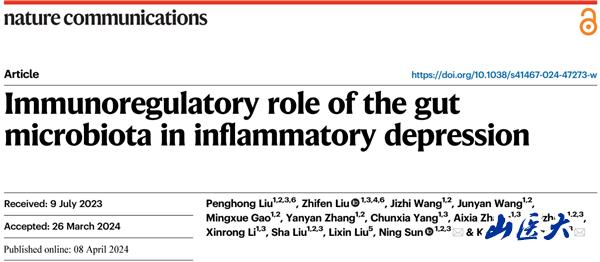 喜讯!我校精神卫生学团队在《Nature Communications》上发文揭示炎性抑郁症患者肠道菌群特征