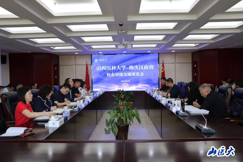 崔宴杰介绍了晋中市与大学城驻地高校开展精准对接,通过校地合作推动“晋中有座大学城”向“晋中是座大学城”的转变,榆次区作为晋中市的首善之区,要先行一步,做深一层。他表示,榆次区政府对引进医疗卫生人才、吸引医学专业学生到区属医疗机构企业见习实习、在创新创业方面与学校展开合作具有浓厚兴趣与强烈愿望。也希望学校能够发挥自身优势,为榆次区的经济社会发展提供强有力的人才支撑和智力支持。榆次区科技局、人社局、卫健体局负责同志介绍了各自领域的政策和做法。榆次区的十余所医疗机构与企业代表介绍了各自的情况和需求。