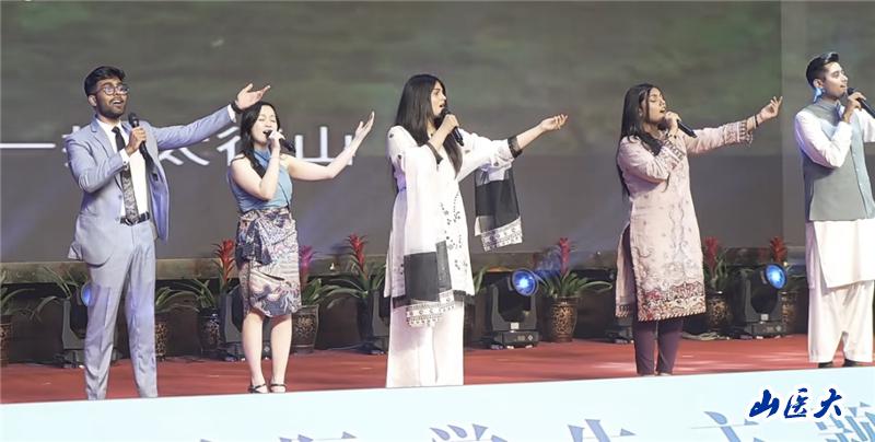 文艺表演环节,我校留学生深情演唱的《人说山西好风光》赢得了现场嘉宾的热烈掌声。