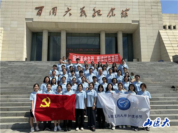 为庆祝中国共产党成立102周年,引导师生党员牢记初心使命、保持优良传统、坚定理想信念,增强党组织的凝聚力与战斗力,6月24日,我校护理学院党委组织开展“弘扬百团精神,赓续时代担当”主题党日活动。护理学院全体院领导、教师、学生党员代表前往阳泉参观百团大战纪念馆,活动特别邀请校主题教育督导委员会委员、校工会主席周德杰参加。