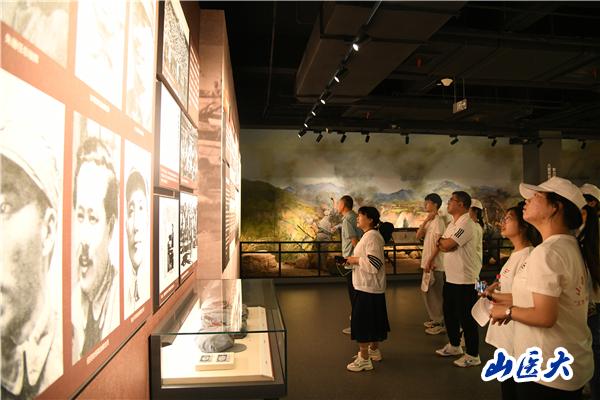 6月24日上午,实践队来到麻田镇八路军总部旧址纪念馆。一幅幅历史图片、一件件珍贵实物将我们的思绪拉回了那个战火纷飞的抗战时期。同志们恭默守静,神情严肃,身临其境的感受邓小平、彭德怀、左权、刘伯承等老一辈无产阶级革命家们和先烈们为争取民族解放而艰苦奋斗的无畏精神,发扬老一辈革命家大无畏精神和密切联系群众的优良传统作风,弘扬以爱国主义为核心的民族精神。在麻田八路军总部纪念馆第九展厅,实践队中的党员、预备党员佩戴党员党徽,与入党积极分子一同重温入党誓词。