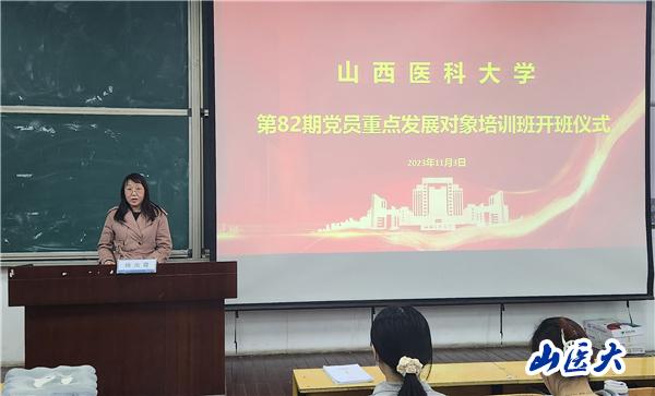 11月3日,学校党校第82期党员重点发展对象培训班正式开班。本期培训班分两个班次,于中都校区和迎泽校区同时开班,全校548名党员重点发展对象参加了开班式。校党委组织部副部长杨凤霞、王燕分别出席迎泽校区和中都校区开班式并作动员讲话。开班式由各班的班主任主持。