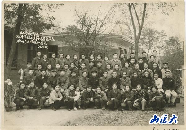 1956年10月25日,山西医学院附属医院内科全体医护同志欢送李运乾医师留念。图中第二排左六为李运乾。