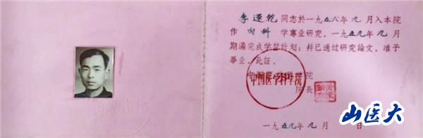 1959年李运乾获得中国医学科学院颁发的研究生毕业证书。2017年李运乾赠予中国心血管医学博物馆。