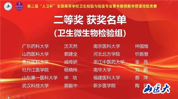 喜讯:我校公共卫生学院教师在第二届 “人卫杯”全国高等学校卫生检验与检疫专业青年教师教学授课竞赛中喜获佳绩