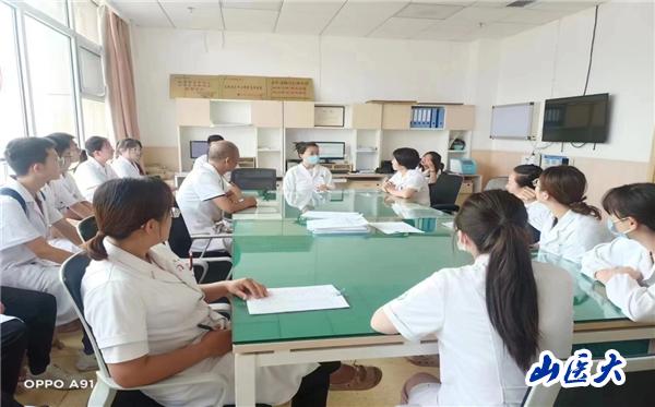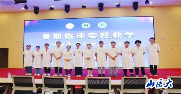7月11日两校学生正式进入介休市人民医院见习,由介休市人民医院主办了欢迎仪式和岗前培训,并按照1+3的模式给每三名学生分配一位带教老师。