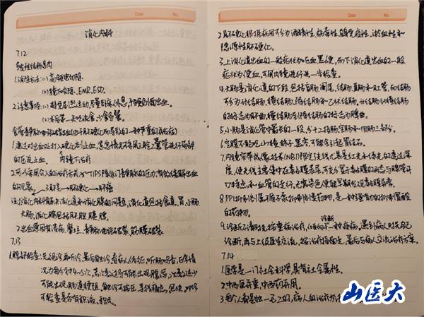 7 月 12 日~7 月 14 日,同学们开启了第一阶段的见习。同学们旁听病例讨论,来自山医 5+3一体化的高行健同学感慨:虽然我们现在都是大一的学生,没有系统地学习临床知识,但是我经过这些天的学习,感受到很多东西。讲述之余,他主动和大家分享了他的笔记。