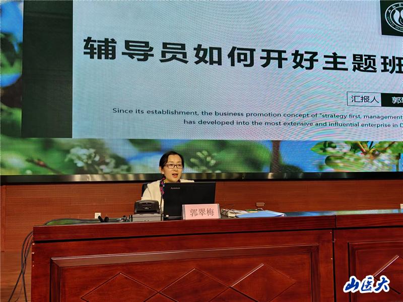郭翠梅以“如何开好主题班会”为主题,从是什么、为什么、怎么开三方面结合自身日常工作案例,与大家分享了许多辅导员工作中遇到的经验和方式方法,白天要做到走、干、讲,晚上要伏案读、写、想。她讲到,作为辅导员要坚守教育信条,要抓住关键的人,在每一个关键节点,做一件件关键的事。学生的成长,需要辅导员的爱心、责任心和智慧来共同浇筑。在场的辅导员听后都感同身受、深受启发。