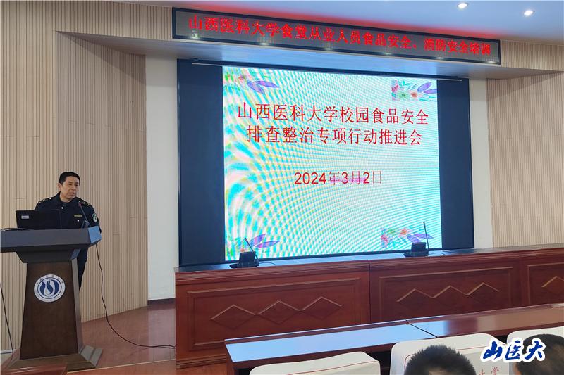 为了深入贯彻落实《中华人民共和国食品安全法》及其实施条例、《企业落实食品安全主体责任监督管理规定》和学校关于进一步做好消防安全工作的通知精神,进一步提升食堂从业人员的专业素养和安全意识,3月2日下午,后勤保障部联合武装保卫部、科技产业开发中心在中都校区基础医学院报告厅举办了食品安全和消防安全培训。迎泽校区、中都校区食堂和大学生服务中心的从业人员、管理人员和原材料供货人员等参加了培训。晋中市市场监管综合行政执法队二分队队长王晓光、学校科技产业开发中心主任高永红、后勤保障部党总支副书记杨艳宏、武装保卫部消防管理中心主任李学智到会指导,会议由后勤保障部饮食管理科科长牛拴成主持。