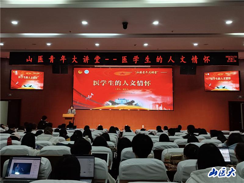 11月13日,山医青年大讲堂走进“一站式”学生社区举行首场讲座。我校第二医院赵长青教授以“医学生的人文情怀”为题作了主旨分享。校团委挂职副书记张海燕主持讲座,300余名同学现场聆听了讲座。