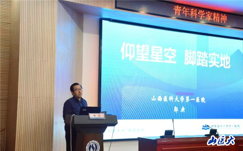 郭庚以其卓越的科研能力和丰富的临床经验,紧扣“仰望星空 脚踏实地”,深入浅出地讲解了他们团队在神经外科、心脑血管疾病等领域的科研进展,与同学们分享了他在急诊中心与同事们团结协作、做好社会守护者的动人事迹。他还谈到了自己从事医疗志愿服务的经历,鼓励同学们利用业余时间参与医疗援助活动,用专业知识践行爱国主义精神,不断增强作为一名医务工作者的责任感和使命感,为祖国医疗卫生事业的发展挺膺担当。
