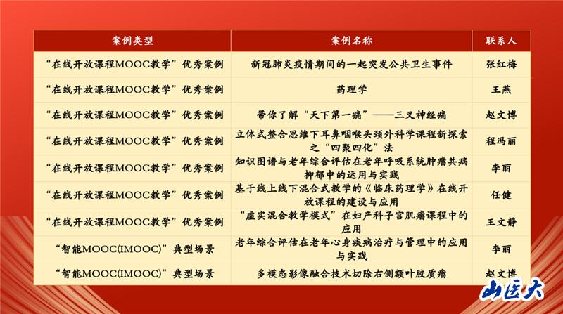 技术赋能教育,教育塑造未来。作为推动高等教育变革的重要引擎,慕课创新教学模式、助推课堂教学变革。近年来,我校打造了一批高质量的在线开放课程,获国家级线上一流课程1门、省级28门,国家级线上线下混合式一流课程15门、省级73门,其中41门课程上线国家高等教育智慧教育平台。目前学校已启动AI数智脑教学大模型未来学习中心第一期智慧课程建设项目,将继续推动信息技术与教育教学深度融合,打造具有山医特色的示范性智慧课程群,促进help+bridge AI+卓越医师人才培养。