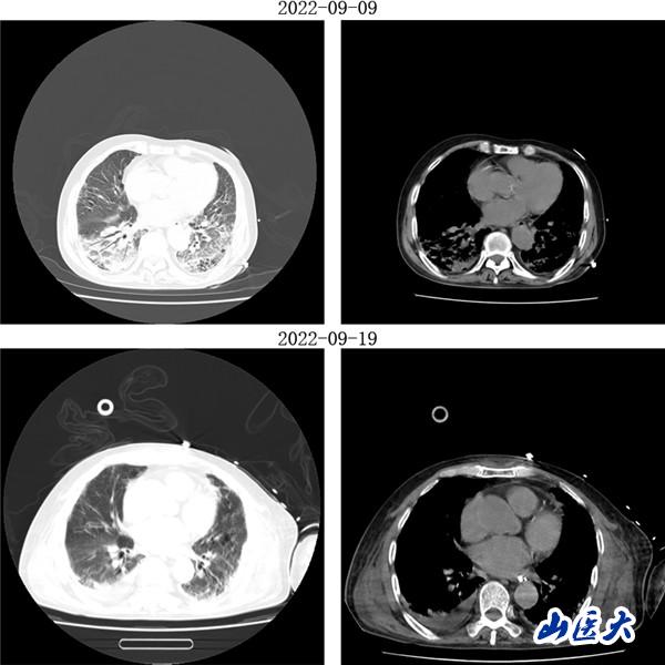 (男性患者治疗前后胸部CT对比)