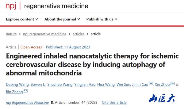 曹济民教授与周鑫教授团队在高水平国际学术期刊《npj Regenerative Medicine》发文:可诱导异常线粒体自噬的吸入式纳米治疗剂治疗缺血性脑血管病