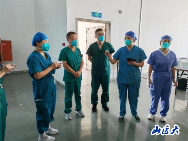 院感防控是疫情防控工作的重中之重。为了确保医护人员“零感染”,队内医疗、护理、院感负责人迅速做出反应,采取以小组为单位进行战前培训,梳理薄弱环节,加强“穿脱防护服”培训及考核,由援鄂、援沪的“老人”带领“新人”,各项工作井然有序的进行。同时,党组织成立了党员突击队,队员们充分准备、随时战斗。领队吴旭东、总队长贾红燕一再叮嘱后勤保障组要把后勤保障的各项工作落实到位。