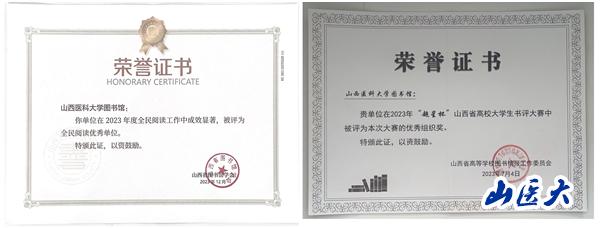 近日,我校图书馆先后获得山西省文化和旅游厅颁发的2023年山西省群众文化惠民工程群众文化服务品牌活动“全民阅读推广”优秀组织单位、山西省高等学校图书情报工作委员会“山西高校图书馆2022-2023 年先进集体”、全国图书情报专业学位研究生教育指导委员会 “2023年全国图书情报案例学术研讨会暨图书情报创新案例大赛”优秀案例奖。