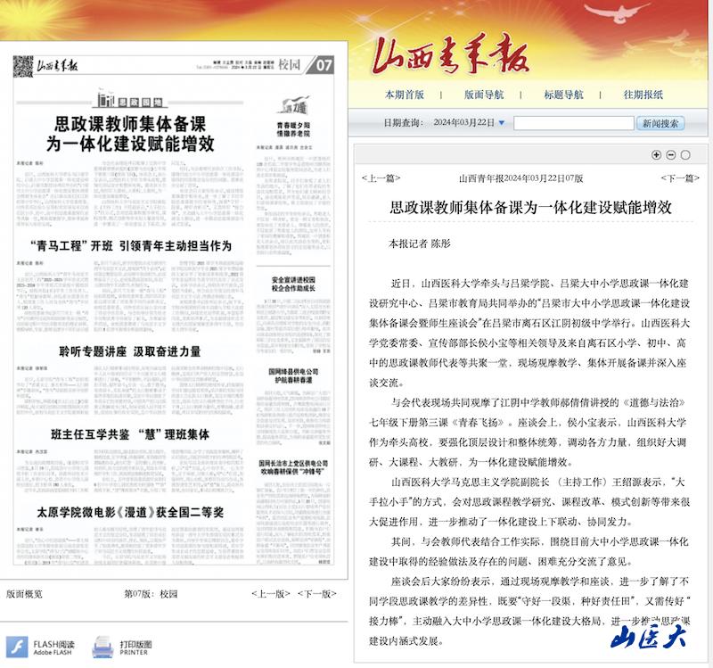 山西青年报 | 思政课教师集体备课为一体化建设赋能增效