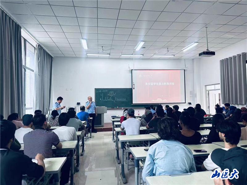 为进一步加强我校在校来华留学生法律法规教育,提高留学生的知法守法意识、安全意识和风险防范意识。7月11日下午,国际教育学院邀请晋中市高校分局和晋中市公安局出入境管理局的相关负责人走进校园,为留学生开展普法安全教育专题讲座。国际教育学院、武装保卫部相关负责人、留学生辅导员以及九十余名留学生参加了本次讲座,活动由国际教育学院专职辅导员李彦欣主持。