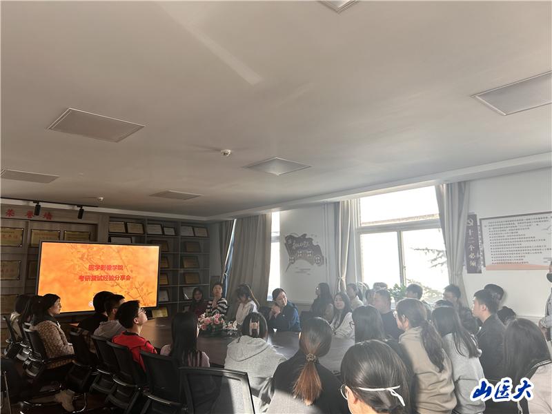 3月22日下午,医学影像学院在迎泽校区图书馆南侧会议室举办了考研复试经验分享会。学院党总支副书记郭晔,毕业年级思想政治辅导员姚苏霞、梁建秀,5位2023级研究生以及报考医学影像学院的本科毕业年级考研学生共40余人参加了分享会。
